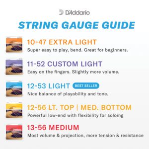 The pioneering Phosphor Bronze acoustic guitar strings are precision wound with phosphor bronze wrap wire over a high-carbon steel core, providing tonal versatility suitable for all acoustic styles and musical genres. 12-53 Light gauge strings are our most popular acoustic gauge, providing a nice balance of playability and tone.
