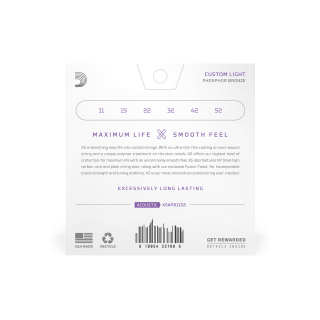 Κατασκευασμένες με πυρήνα από NY Steel, περιέλιξη από phosphor bronze και τεχνολογία Fusion Twist, οι επικαλυμμένες ακουστικές χορδές XS διαθέτουν ασύγκριτη αντοχή στο σπάσιμο και σταθερότητα κουρδίσματος, σε συνδυασμό με τη σημαντικά αυξημένη διάρκεια ζωής τους.