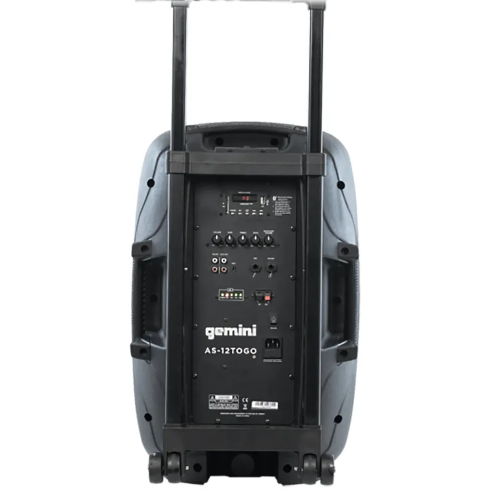 Το Gemini AS-12TOGO είναι ένα ισχυρό φορητό ηχείο PA (publick address), σχεδιασμένο για δυναμικό στερεοφωνικό ήχο όπου κι αν βρίσκεστε. Με επαναφορτιζόμενη μπαταρία λιθίου, ενσωματωμένη τηλεσκοπική λαβή και ρόδες μεταφοράς, αποτελεί την ιδανική λύση για πάρτι, εκδηλώσεις, παρουσιάσεις και υπαίθριες χρήσεις.