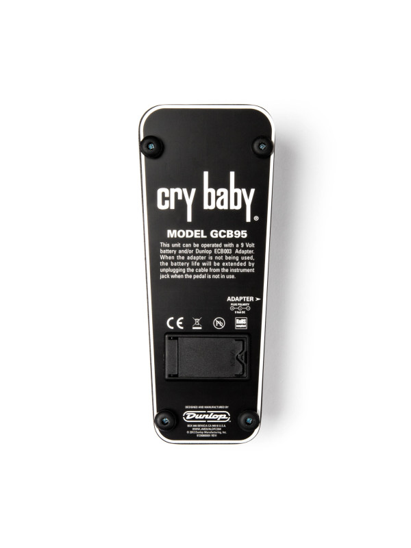 Το GCB95 διαθέτει τον θρυλικό επαγωγέα Fasel® (κόκκινο), προσφέροντας πλούσιο και δυναμικό ήχο με εστιασμένα πρίμα και έντονο wah χαρακτήρα. Είναι κατασκευασμένο με ανθεκτικό περίβλημα από χυτό μέταλλο (die-cast) και εξοπλισμένο με ποτενσιόμετρο Hot Potz, σχεδιασμένο για έως και ένα εκατομμύριο κύκλους χρήσης, εξασφαλίζοντας μεγάλη διάρκεια ζωής. Τροφοδοτείται μέσω αντάπτορα Dunlop ECB003 ή με μία μπαταρία 9V.